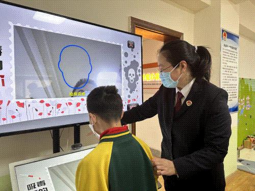 进入普法教育基地的小朋友们,瞬间就被各种新奇的普法宣传教育设施所吸引,争先恐后的体验起来。