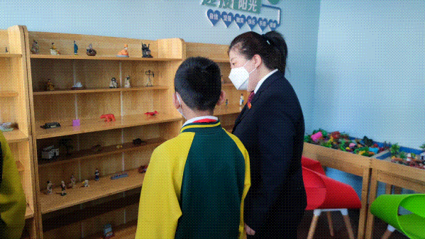 心理疏导区,孩子们全神贯注地在沙盘四周布局思考,在玩偶架上选取迷你玩偶和设施设备,然后心无旁骛的搞起沙盘建设。
